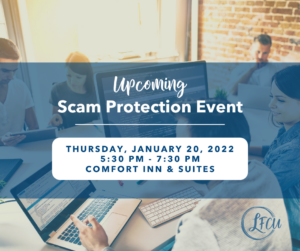 As the old adage goes, an ounce of prevention is worth a pound of cure! To further assist members, we have created a suite of products, assessments, and informative sessions to help members get in front of this national crisis. We invite and encourage LFCU and community members to attend the upcoming events to combat and prevent potential scams.