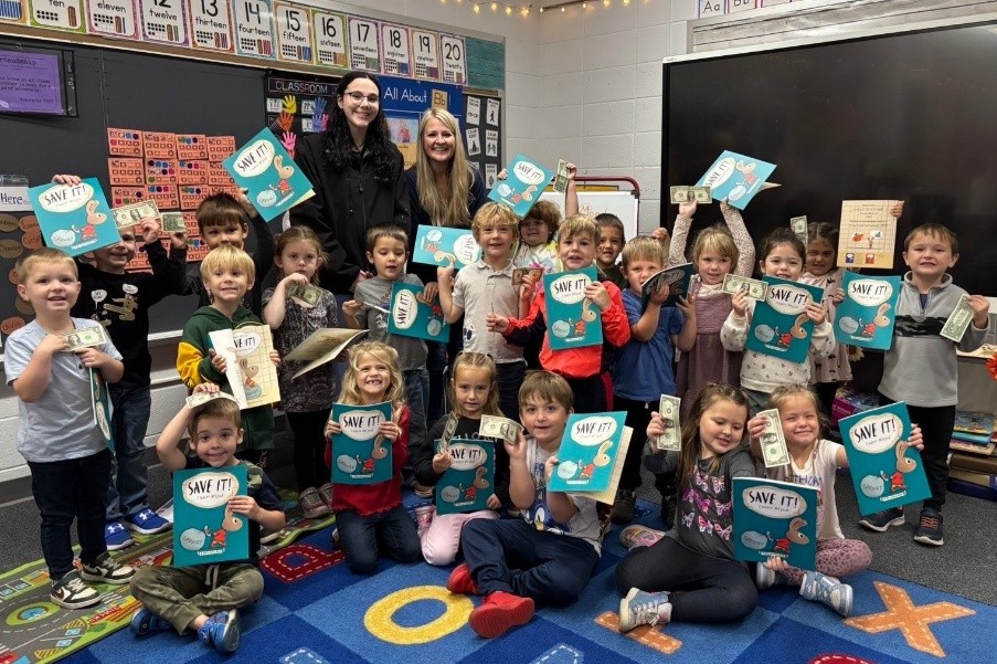 As part of our 2025 Financial Literacy Month initiatives, Alyssa Swanson, Chief Operations Officer, and Kariann Paoli, Member Service Representative of Lending and Deposit Operations, visited local classrooms to read Save It! by Cinders McLeod. The storybook, which follows a young bunny learning to save money, taught students the importance of spending wisely, setting goals, and planning ahead—helping young learners understand the value of saving.