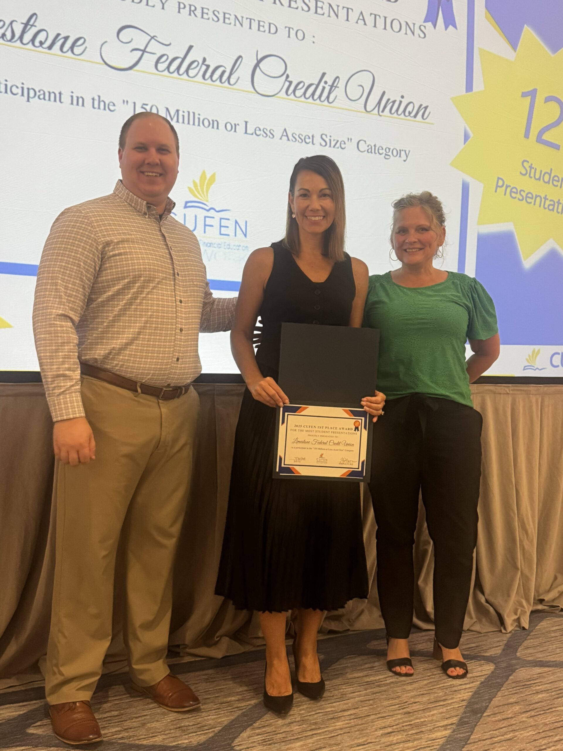 Nationally, the credit union movement reached 365,938 students and 295,362 adults via financial education presentations.¹ We’re proud to announce that Limestone Financial Credit Union placed 3rd in the “Most Students Reached” category for credit unions with assets of $150 million or less, as listed in CUFEN’s 2024 Annual Report.