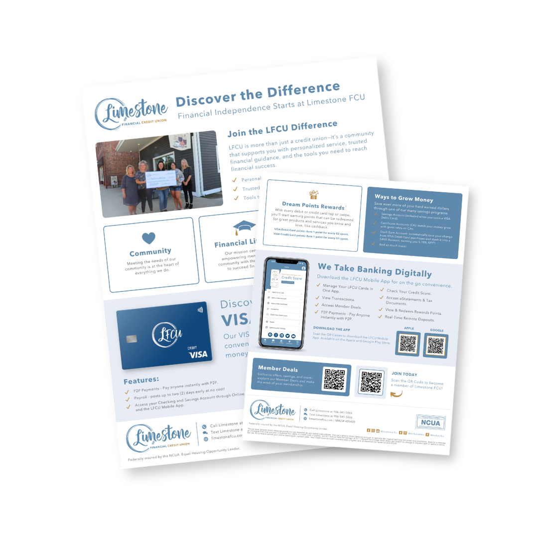 Whether you’re managing everyday finances, planning for the future, or looking for a loan, our wide range of services is designed to meet your needs. Explore our membership hand-out to learn more.